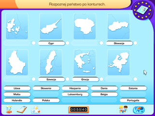 Część rozrywkowa zawiera gry edukacyjne do sprawdzenia wiadomości z geografii Europy, znajomości flag narodowych, stolic, powierzchni oraz liczby obywateli państw członkowskich. Część ta zawiera gry pamięciowe Memory z możliwością wyboru poziomu trudności, wybór flag narodowych oraz rozpoznawanie strojów ludowych. To wszystko w komiksowej formie, atrakcyjnej dla dzieci.